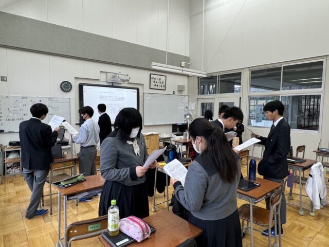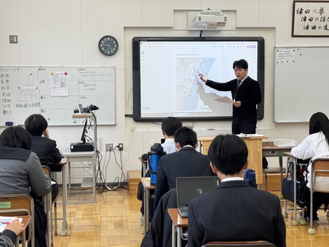当日の授業では、その記録を声に出して音読し、最新の研究の成果も踏まえながら、東日本大震災と貞観地震の類似点を確認しました。そこから先人が残した記録や言葉の重要性を改めて学ぶことができました。