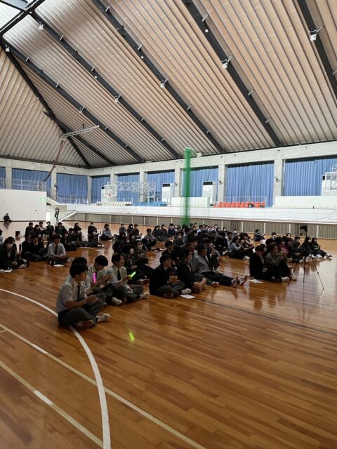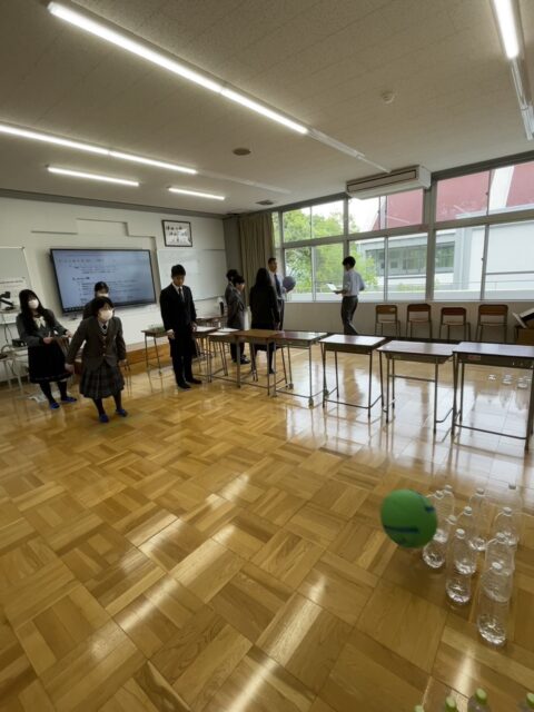 その後校舎に戻り、チーム対抗のゲームを楽しみました。 生徒自らで企画から当日の運営までを行い、全校生徒が夢中になって参加し、 大いに盛り上がりました。