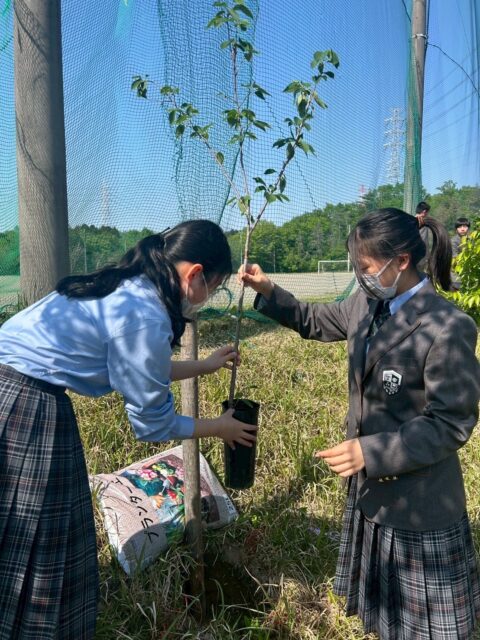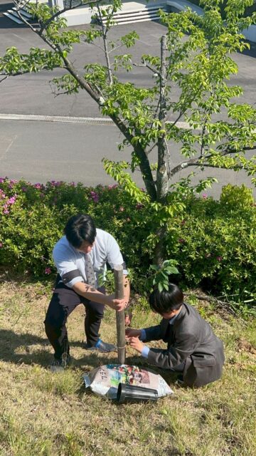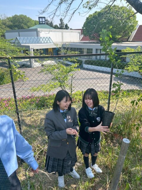現在、本校の春を彩る桜の木も過去の卒業生が植樹したものであり、 今回植えた桜の木も、数十年の時を経て本校の春を彩ってくれるものとなるでしょう。