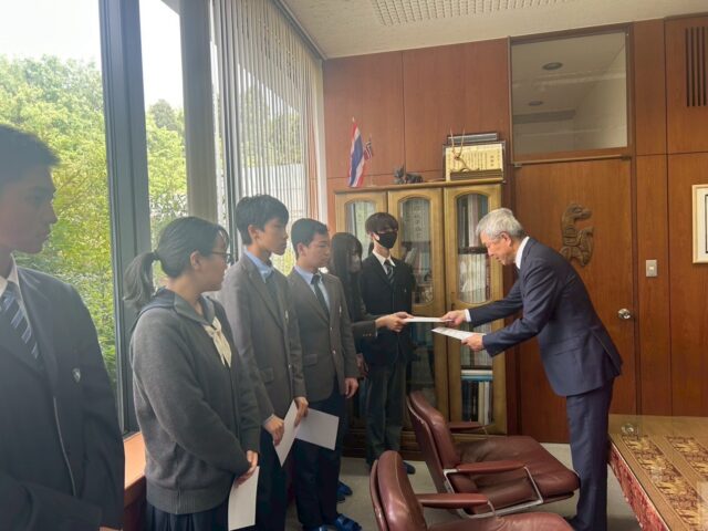 5/1(木)の昼休みに、校長室で今年度の生徒会役員の任命式を行いました。