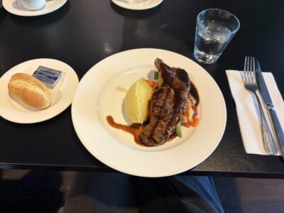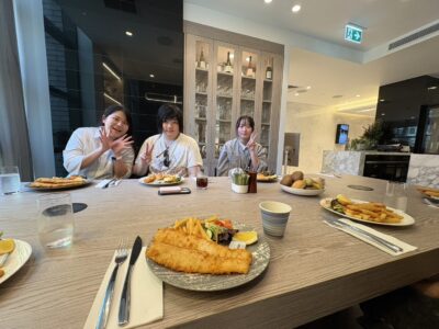 昼食はフィッシュアンドチップス、夕食はステーキを楽しみました。