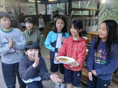 1日目は三重県環境学習情報センターで水質調査を行い、 午後からは少年自然の家で飯ごう炊さんや親睦の集いに取り組みました 。 自然の中での体験を通じ、仲間と協力しながら集団生活の第一歩を踏み出しました 。