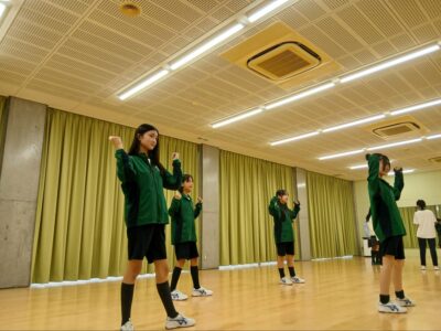 柔道場やテニスコート、ダンススタジオには多くの新入生が集まり、先輩の指導に目を輝かせていました。