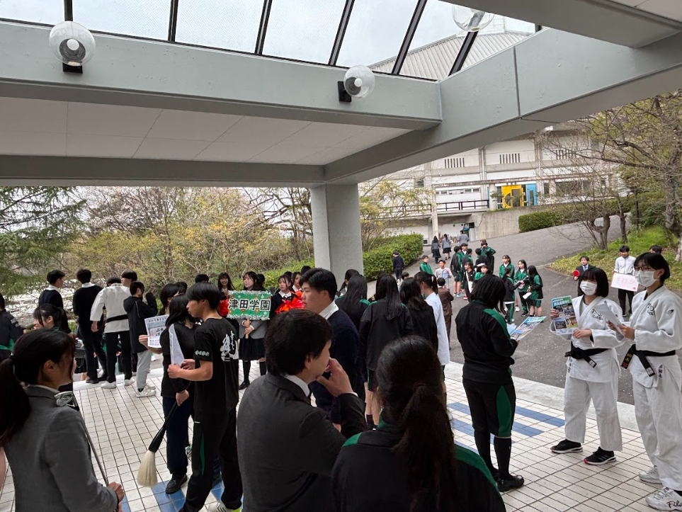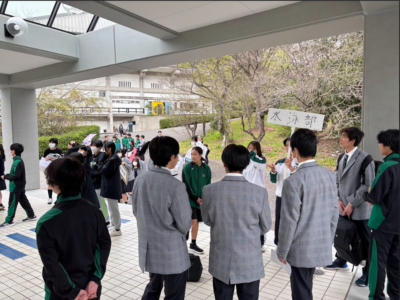 4月10日(木)、新入生対象の部活動体験会を実施しました。部員たちは昇降口で思い思いの方法や声掛けで、新入生を勧誘していました。昇降口で希望の部活動を見つけた新入生はその後、先輩部員に連れられて各活動場所へと移動し、実際に活動に参加しました。