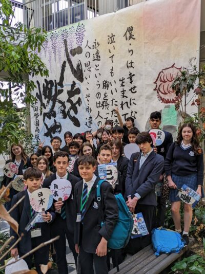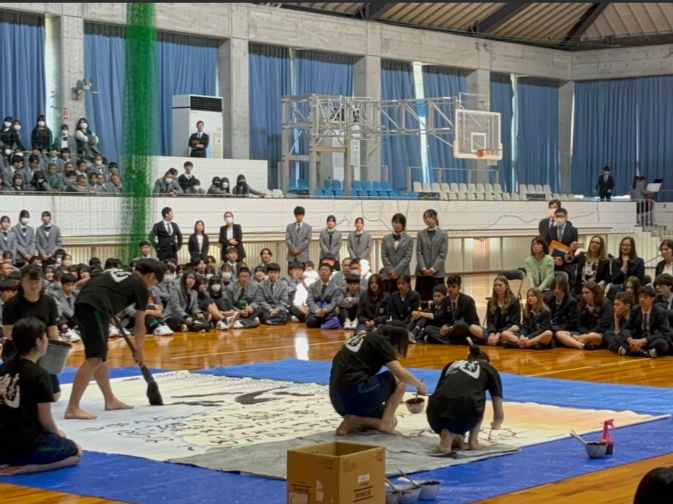 4月21日(月)、令和7年度英国(HGS=Holme Grange School)留学生歓迎会を実施しました。学校法人津田学園の創立からこれまでの歩みをまとめた紹介動画を視聴してもらったあと、歓迎の意を込めて書道部は書道パフォーマンスを、吹奏楽部は演奏を披露しました。