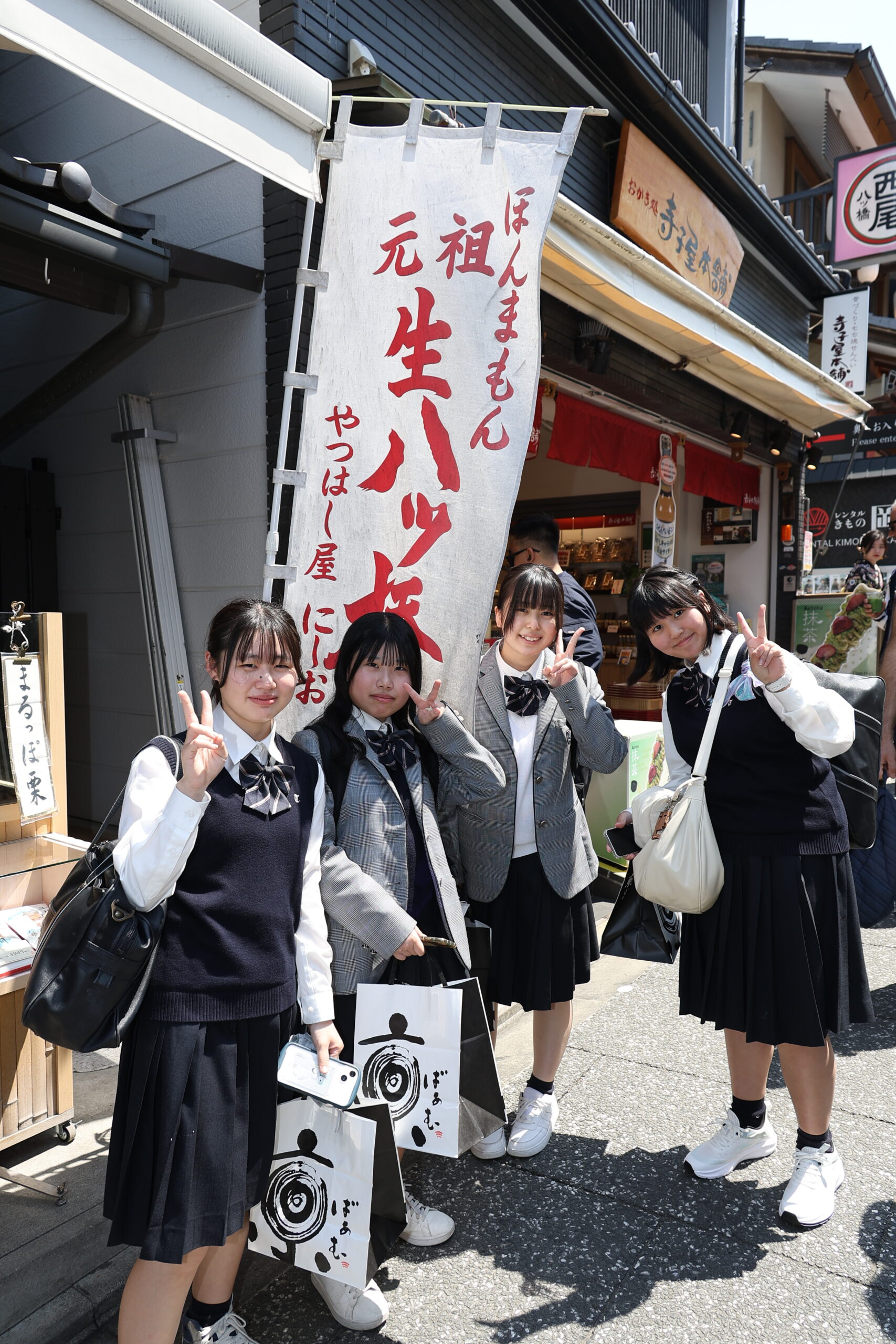 4月23日(水)、1年生が遠足で京都を訪れました。今年の遠足は、英国の姉妹校Holme Grange School(HGS)の生徒さんも特別参加。普段とは一味違う、国際色豊かな遠足となりました。 京都に到着後、全員で集合写真を撮影し、その後はグループに分かれて知恩院周辺の自由散策へ。連休の谷間とあって、国内外の観光客で活気にあふれていました。生徒たちは、その賑わいの中で、日本の伝統文化と異文化が交錯する様子を五感で体験。特にHGSの生徒さんたちは、日本の歴史と文化を肌で感じ、深く理解する貴重な機会を得たようでした。古都の魅力と国際交流が相まって、生徒たちにとって忘れられない一日となりました。