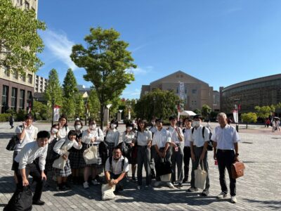 8月2日(土)津田学園中学校・高等学校(六年制)および津田学園高等学校(三年制)の生徒14名が、立命館大学びわこ・くさつキャンパスのオープンキャンパスに参加しました。広大で美しいキャンパスと、最先端の設備が整った学びの環境に、生徒たちは驚きと感動を覚えていました。各学部が提供する体験プログラムでは、AIロボットの操作や生命科学の実験など、大学ならではの高度な学びに触れることができました。また専門分野の講義を聴講することで、大学での学びが将来の進路や職業にどうつながるのかを具体的にイメージすることができ、生徒たちの進路選択に大きな刺激となりました。今回のオープンキャンパス参加を通じて、生徒たちは大学で学ぶことの意義や可能性を実感し、将来への意欲をさらに高める貴重な機会となりました。
