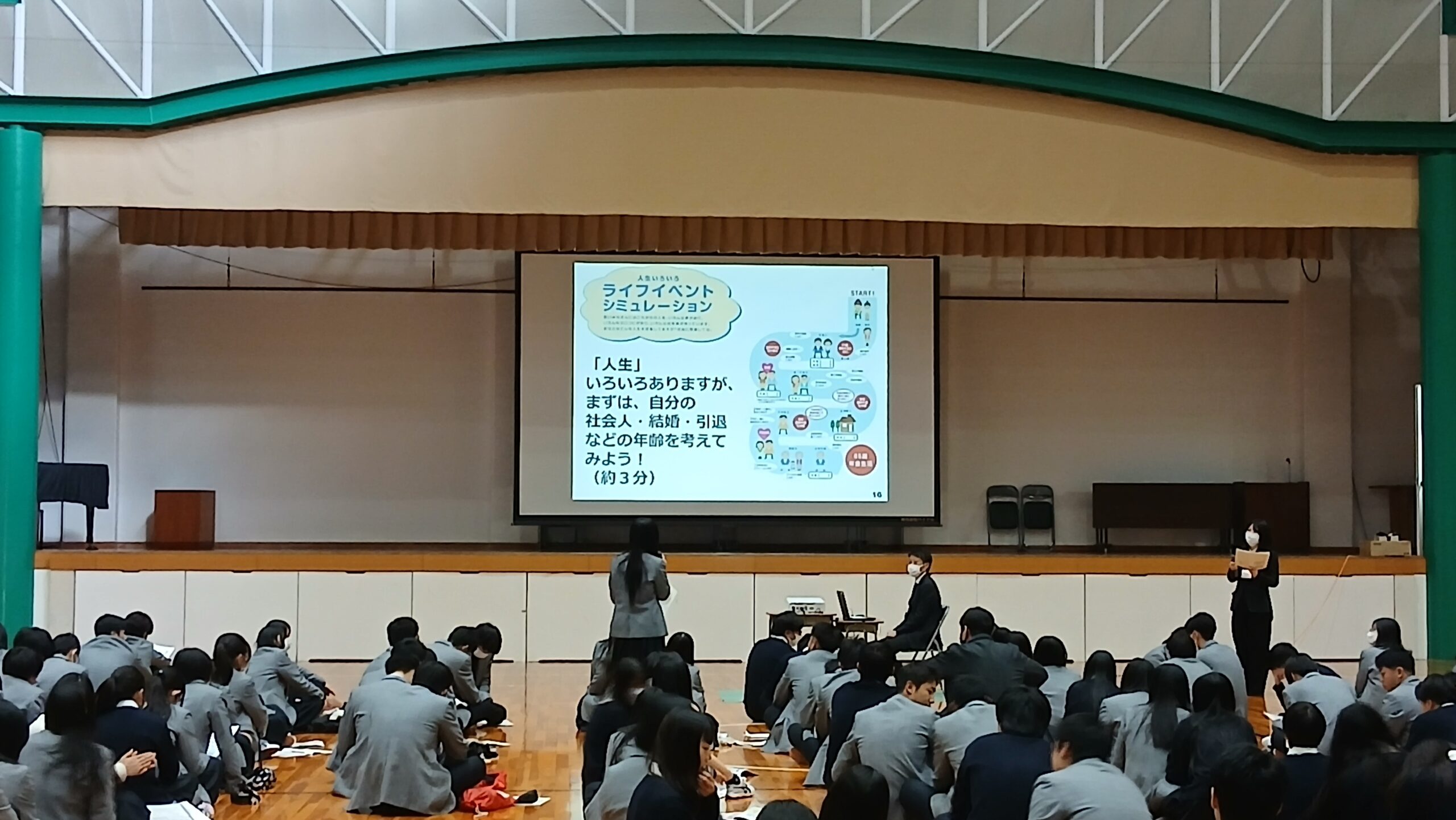 使用された資料「公的年金『はじめのはじめ』」に基づき、これから社会に出る生徒たちが知っておくべき公的年金制度の仕組みについて詳しく学びました。セミナー内では「ライフイベントシミュレーション」のワークが行われ、生徒たちは自分の将来のライフプランを想像しながら、老後の生活費や、万が一の病気・ケガの際のリスクについて具体的な数字を用いて計算しました。