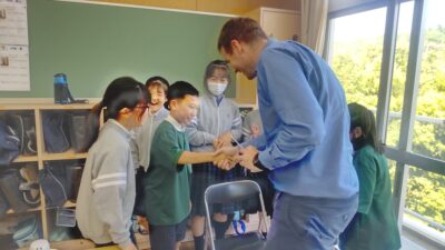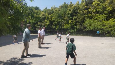 5月13日、海外視察団21名が来校しました。今回はブラジル、フランス、チリ、アメリカ、チェコ、メキシコ、イタリア、ハンガリー、スペインと、多国籍の視察団でした。視察者の皆様には、各クラスに2名ずつ入っていただき、給食をともにしながら児童たちとの交流を深めていただきました。休み時間には、ドッジボールや鉄棒遊びを楽しみ、日本の学校生活の一端を体験していただきました。今週はさらに多くの海外視察団をお迎えする予定です。この貴重な機会を活かし、積極的にコミュニケーションを取り、世界へ視野を広げるきっかけにしてください。