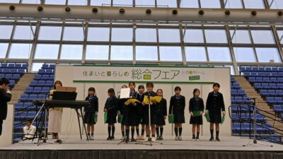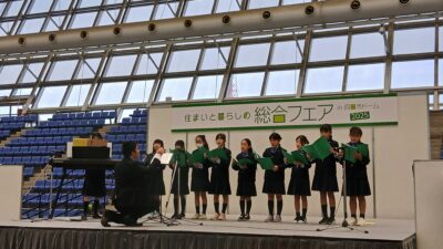10月25日、合唱部が、四日市ドームで開催された「住まいと暮らしの総合フェア」にて演奏を披露しました。このイベントは、住宅メーカーや地元工務店、金融機関、通信、美容・健康など、暮らしに関わる多彩な企業がブースを構える、三重県内最大級の総合生活イベントです。合唱部はそのステージ部門に参加し、多くの来場者の前で歌声を響かせました。会場は大変にぎわっており、部員たちはその広さに圧倒されながらも、気持ちを整えて本番に臨みました。広い空間の中で声が届きにくい場面もありましたが、部員たちは口を大きく開け、精一杯の歌声を届けていました。この経験は、合唱部員一人一人にとって大きな成長の機会となっただけでなく、津田学園小学校合唱部の存在を多くの方に知っていただく貴重な機会にもなりました。今回の経験を今後の活動にしっかりとつなげていきたいと思います。