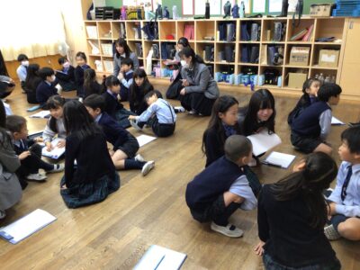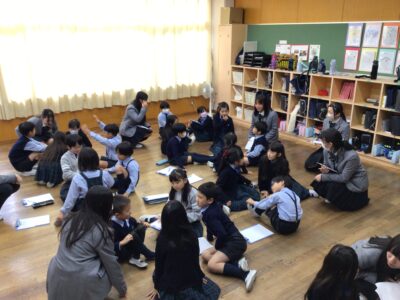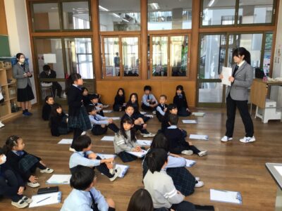 11月24日、2年生と4年生を対象に津田学園高等学校1年生による「食品ロス」に関する出前授業を行いました。高校生が先生役となり、まずは給食でどれほど食べ残しが出ているのかをデータで示し、児童たちはその量に驚き、食品ロスを減らすためにどうすればよいかを真剣に考える姿が見られました。続いて、食品ロスを減らすための具体的な方法について、クイズ形式で楽しく学びました。「この食材はどこまで食べられる?」「冷蔵庫での賢い保存方法は?」といった、日常生活に直結する内容に児童たちは積極的に参加し、大いに盛り上がりました。今回の授業を通して、児童たちは食べ物の大切さを改めて実感するとともに、環境問題への意識を高めることができました。学んだことを家庭や学校生活の中で生かし、給食や日々の食事をより大切にしていくことを期待しています。
