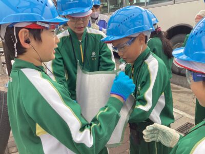 12月4日、4年生がトヨタ車体へ社会見学に出かけました。ここでは、アルファードやハイエースなどの人気車種が生産されています。見学では、車が完成するまでのプレス、溶接、検査など、さまざまな工程を見せていただきました。子供たちの多くが最も印象に残ったと話していたのは溶接の工程です。800℃から1000℃の高温で火花が散る迫力ある様子や、多くのロボットが正確に働き、あっという間に車の形ができあがっていく様子に、驚きの声が上がっていました。見学後には、タイヤの重量体験やねじ締め体験にも挑戦しました。約20kgあるタイヤを持ち上げる体験を通して、重い部品を運ぶための補助機の重要さを実感していました。そのほかにも、工場内に漂うガソリンや新車特有のにおいを感じたり、作業服や安全靴の工夫に触れたりすることができ、子供たちは多くのことを学びました。モノづくりの現場を五感で体験する、貴重な機会となりました。