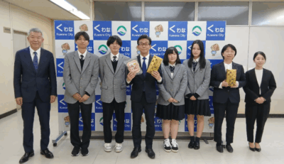 12月23日、探究活動の一環として、地元の名店「美鹿山荘」様のご協力のもと開発を進めてきた新商品「ガツンと梅」がついに完成しました。商品の完成をご報告するため、開発メンバーが桑名市長を表敬訪問いたしました。本商品は、今夏に本校野球部が甲子園へ出場した際の「あの夏の熱気」をイメージし、メンバーが何度も試食と議論を重ねながら開発したものです。汗をかいた体に染み渡るような、“ガツン!”とくる梅味に仕上がっています。市長には活動への想いや開発の経緯をお伝えすることができ、大変貴重な経験となりました。ご協力いただいた美鹿山荘様に心より感謝申し上げます。
