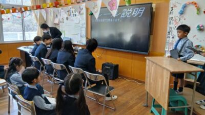 卒業式を間近に控えた6年生のために、「6年生を送る会」が開催されました。これまで学校の中心として活躍してきた6年生に、下級生たちが感謝の気持ちを込めて温かい時間を届けました。5年生のエスコートで各教室を訪れた6年生は、思い出を振り返るクイズや企画で下級生と大いに盛り上がり、教室には笑顔があふれました。交流後には贈り物の交換が行われ、5年生からは感謝を込めたハンカチ、6年生からは奉仕活動や梅林の看板づくりの紹介があり、伝統を受け継いでほしいという思いが語られました。会の締めくくりは全校合唱です。互いの顔を見つめながら歌う歌声には、これまでの思い出や成長の喜びが込められ、会場は深い感動に包まれました。6年生が示してきた優しさとリーダーシップは、在校生の心にしっかりと受け継がれています。