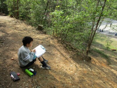 4月17日、日ごとに暖かさが増し、校庭を渡る風もすっかり春の色を帯びてきました。現在、4年生の図工では、この心地よい季節を自分なりの視点で表現する「季節をかんじて」の学習に取り組んでいます。今回の授業では、画板を手に校庭へ飛び出し、それぞれが感じた“自分だけの春”を探しました。子どもたちが見つめるのは、単なる「春の景色」ではありません。「あ!こんなところに花が咲いてる」「虫を見つけたよ」と、心に響いた瞬間を逃すまいと、思い思いにアンテナを広げ、夢中になってスケッチする姿が印象的でした。現在は、校庭で丁寧に描き上げたスケッチに水彩絵の具で色を重ねているところです。同じ場所にいても、子供たちが切り取る景色は一人ひとり異なります。絵の具のにじみや筆の勢いから、それぞれの個性が白い画用紙の上で少しずつ形になり始めています。これからどんな「世界に一つだけの春」が完成するのでしょうか。