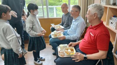 4月22日、ハンガリーの視察団が来校されました。今回の交流で最も子供たちが目を輝かせたのは、昼休みのひとときでした。視察団の皆様が「自分たちの国の発明品だよ」と取り出したのは、ルービックキューブ!ハンガリーが生んだこの知育パズルを目の前に、子供たちは大興奮。「どうやるの?」と、一気に視察団の皆様の周りに人だかりができました。 もちろん、給食や清掃も一緒に行いました。一緒に机を並べて食べる給食や、協力して床を磨く清掃の時間を通じて、視察団の皆様は「日本の子供たちの礼儀正しさと、自立心」を肌で感じていらっしゃいました。遠いハンガリーから届いた素敵な贈り物と、温かい交流。子供たちの記憶に深く刻まれる、刺激的な一日となりました。
