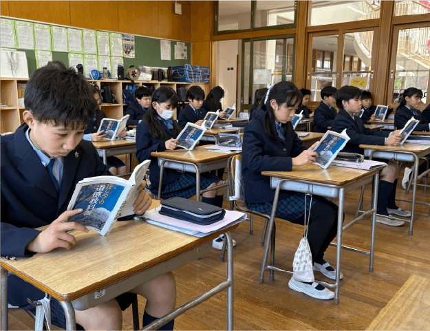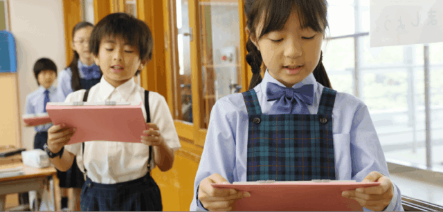 毎朝30分間の「朝の会」の中には「読書の時間」と「計算の時間」を組み入れています。全ての学習の土台となる「読む力」と「計算力」、そして学習に対する態勢や基礎学力を養うため、これらを毎日継続し積み重ねます。「読書の時間」は、名文に親しむことができるよう音読や群読を行っています。「計算の時間」は本校オリジナルの計算プリントや学習アプリに取り組むことを基本に、そろばんも取り入れながら計算力を向上させます。