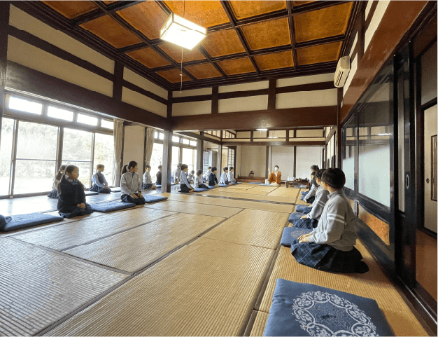 年に1回、全学年が座禅を体験します。座禅体験を通して、心を落ち着かせる時間を持つことができます。現代生活においてそういった時間は皆無に等しいと言えます。ただ座り、雑念を取り払う時間は子供にとってはとても新鮮な体験です。