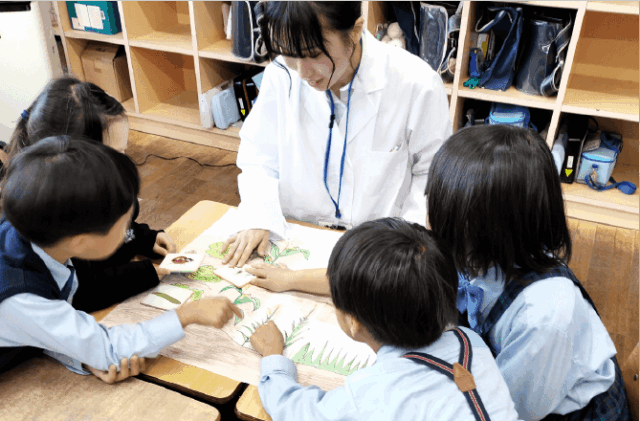 学校の中での限られた学習に留まらず、様々な専門分野の方の力をお借りしたより深い学習を推進しています。外部からの刺激は子供の知的好奇心をより高める効果があります。様々な一般企業やNPO 法人などの方、大学教授などの研究者、環境省などの国の機関、地域で農業や漁業に従事する方、多岐にわたるプロフェッショナルの方と連携し、出前授業や体験学習などを行っています。専門性の高い学びは子供のもっと「知りたい」という気持ちを高め、将来の夢を育むキャリア教育にも繋がっています。