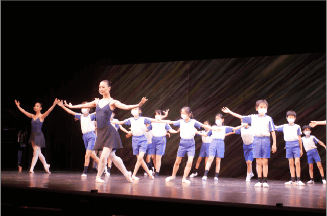 プロのバレエ団からバレエの指導を受けました。そしてともに舞台で公演し、全校児童が鑑賞しました。