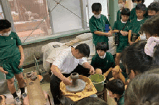 萬古焼の窯元で陶芸を体験しました。ろくろで急須を作る伝統の技も見せていただきました。