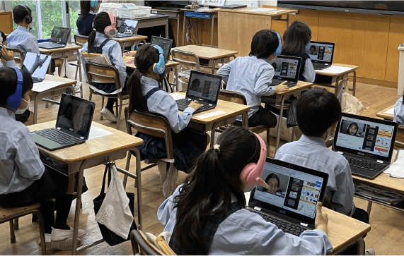 月に一度、海外の英会話講師とつながるオンラインレッスンを実施し、一人一人のスキルやペースに合わせた「個別最適化学習」を展開しています。海外のネイティブ講師と1対1で対話をする25分間のレッスンは、小学生にとって非常に貴重で特別な体験です。英語力はもちろんのこと実践的な対人コミュニケーション能力も向上し、グローバルマインド育成に大きく寄与しています