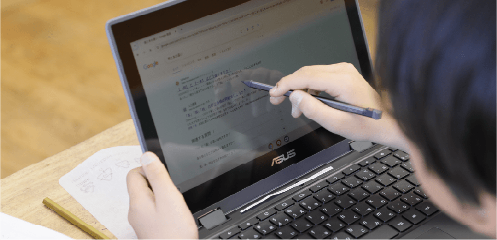 一人一人がタブレット端末を手にした授業が可能な環境を整えています。