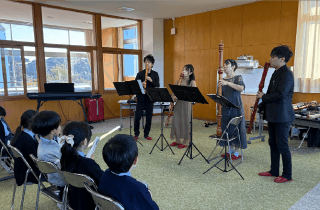 プロのリコーダー奏者の方に、リコーダーの吹き方を教えてもらい、美しい音色を聴かせてもらいました。