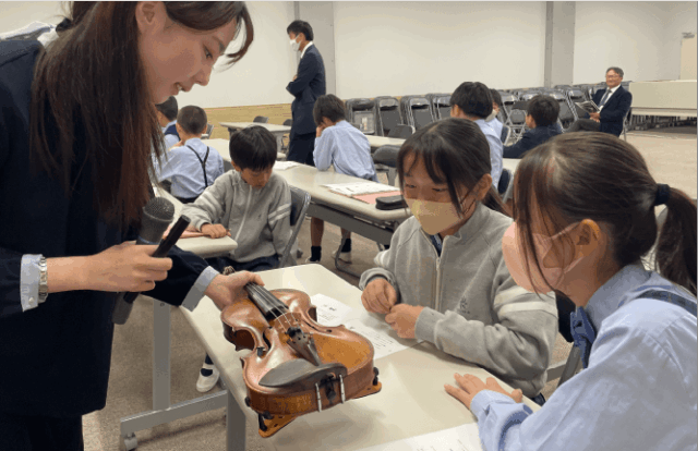 プロのヴァイオリニストとして活躍する本校の卒業生をお招きし、ヴァイオリンの演奏を聴きました。