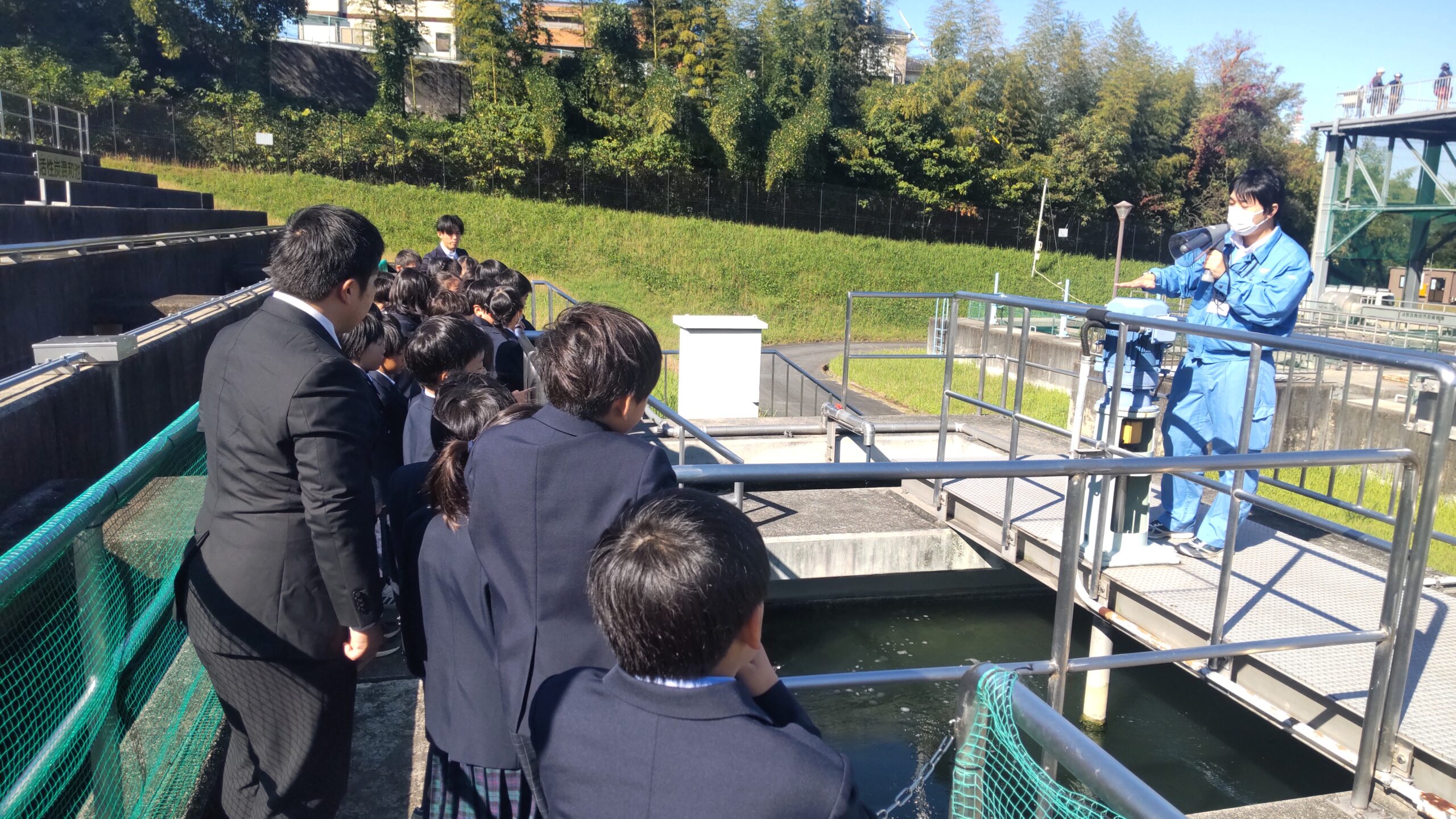 11月11日(月)、3年生が播磨浄水場に社会見学へ行きました。播磨浄水場は木曽川から三重県の様々な市、町の水道の水をつくっています。まずは、川の水をきれいにする実験を行いました。水の中にあるごみを固める薬を入れてかき混ぜ、ろ過することで水がきれいになっていく様子を体験・観察することができました。また、浄水場で実際に水をきれいにしている様子を見に行きました。教科書に載っていたものが目の前に広がっているという貴重な体験ができました。児童からも「浄水場の仕事で大変なこと」や「播磨浄水場では何人の人が働いているのか」といった沢山の質問があり、浄水場の方に答えていただきました。水の大切さを学ぶ機会となりました。