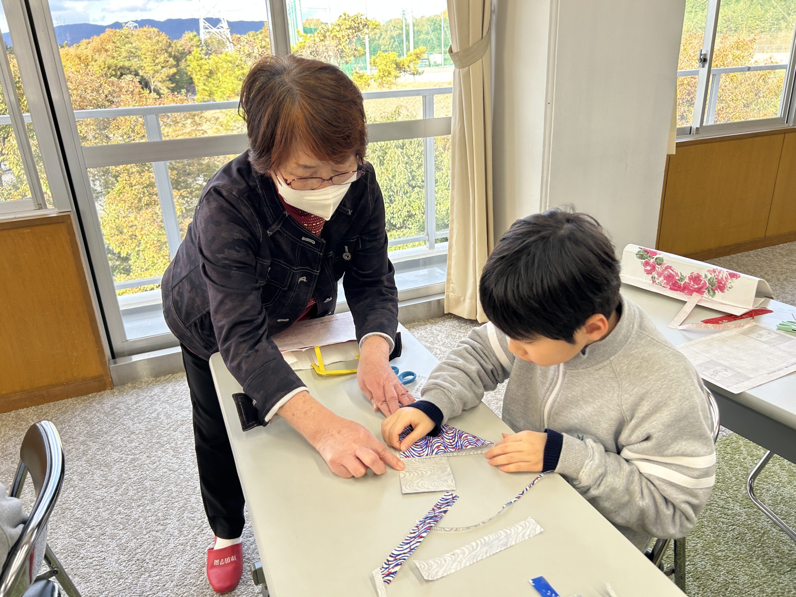 12月5日(木)に1回目の連鶴出前授業がありました。「義道の連鶴を学ぶ会」から講師の方々にお越しいただき、桑名市無形文化財である「桑名の千羽鶴」についてのお話を聞いた後、連鶴づくりに挑戦しました。1枚の紙から2羽~最高97羽の鶴をつなげて折り上げる連鶴ですが、今回は「餌拾(えひろい)」と「花見車(はなみぐるま)」を折りました。色鮮やかな手漉きの越前和紙を使って一生懸命折り、見事完成させることができました。連鶴出前授業は全3回ですので、どこまで難しいものを折れるようになるのか楽しみですね。