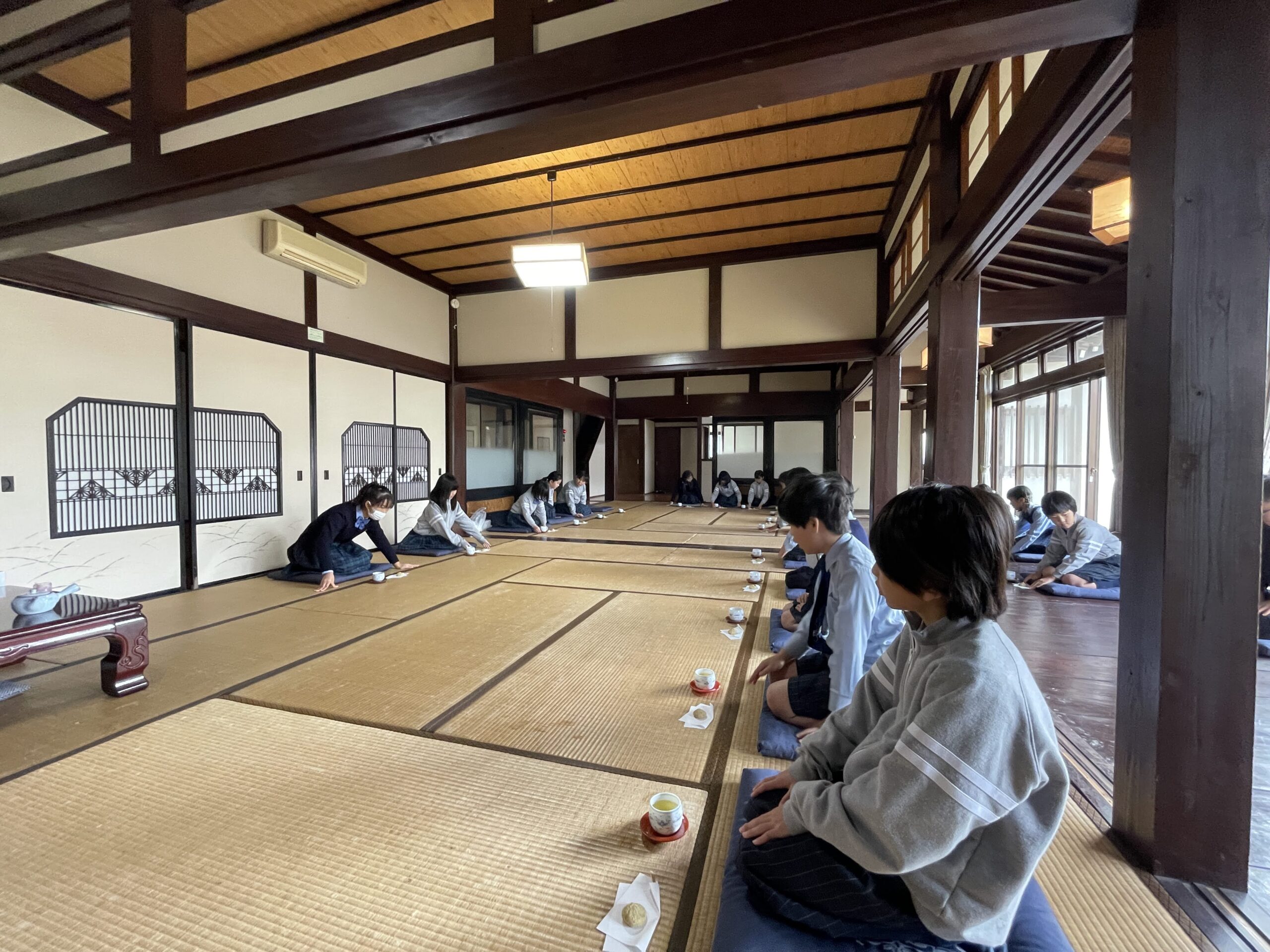 12月13日(金)4年生が礼法指導でお茶の出し方を学びました。児童は4グループに分かれて、お茶をお出しする人たちとお客さんとしてお茶をいただく人に分かれて実践しました。まずは懐紙を折りその上にお茶菓子を乗せます。落とさないように慎重に行いました。そして、その後グループで協力し合いながら、お茶碗にお湯を入れ、お茶碗を温めてから、茶葉の入った急須にお湯を入れました。お茶を蒸らし終えたら、お茶碗に注ぎます。お茶を溢さないように入れるのがとても難しそうでしたが、なんとかやりきりました。最後に全員でいただきますの意味を込めた会釈礼を行い、お茶とお菓子の栗きんとんをいただきました!甘い栗きんとんとお茶がとてもよく合い、幸せな時間となりました。