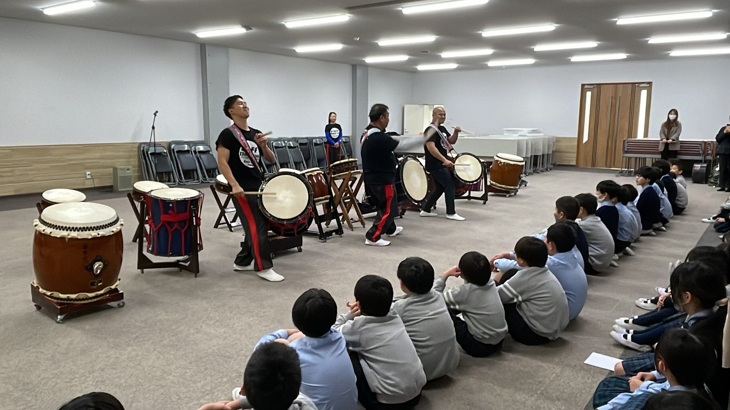 1月15日(水)に5年生が親子ふれあい教室のワークショップに参加しました。ワークショップは「創作和太鼓集団 打鼓音」様に、和太鼓の歴史や名称など和太鼓に関する知識を教えていただきました。最後には、本公演で演奏する「華囃子」を、5年生も実際にバチを持って練習しました。リズムを取って叩くのに苦戦しましたが、最後まで楽しくやり切ることができました。また本公演で上手く演奏できるか楽しみです。