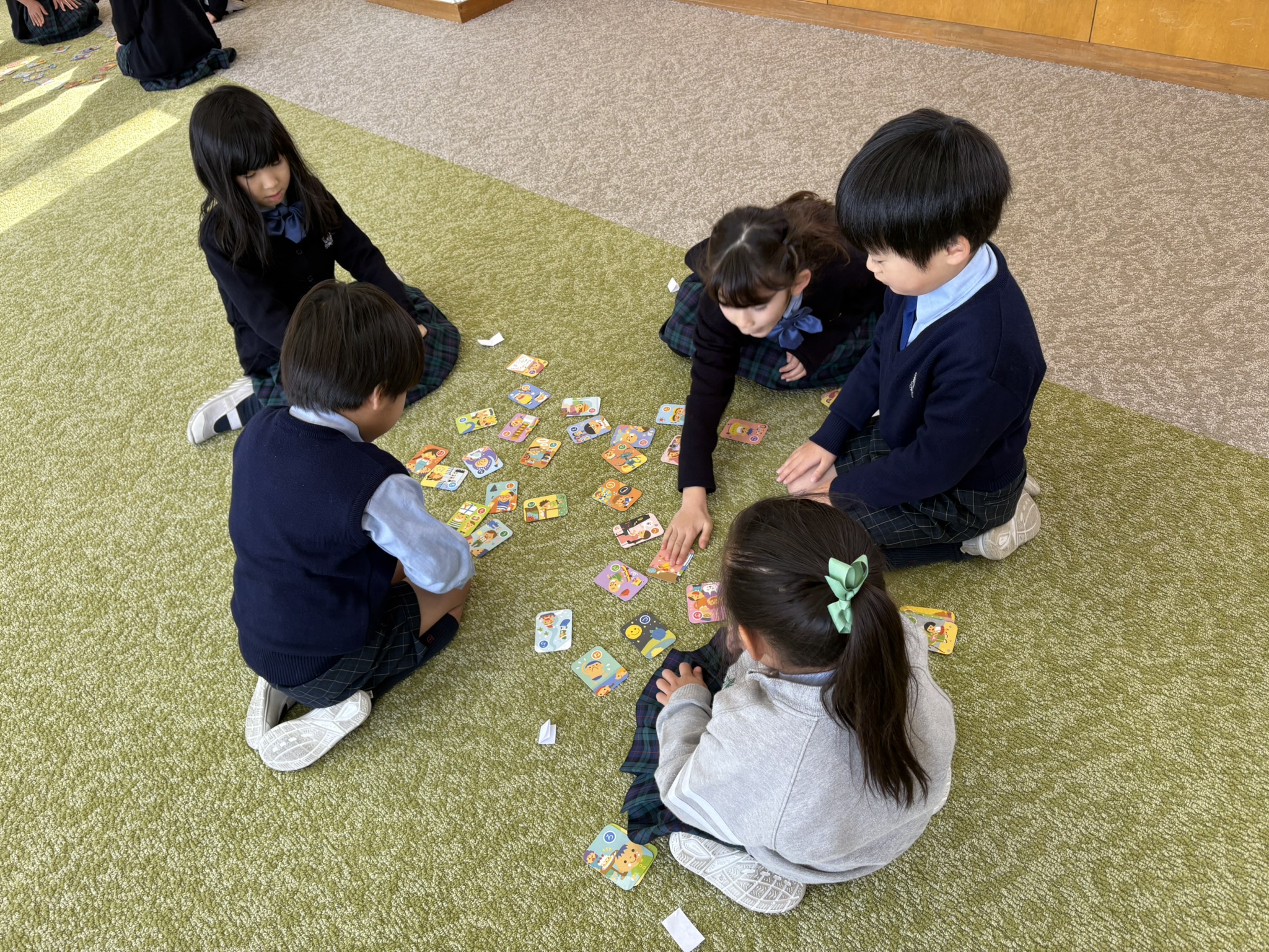 1年生がかるた大会を実施しました。子どもたちは前日からとても楽しみにしており、少し緊張した様子も見られました。グループ分けはくじ引きで行い、クラスの枠を超えて楽しんで札を取ることができました。読み上げられる言葉に集中し、読み上げられた瞬間に「はいっ」という元気な声があちらこちらから聞こえてきました。日本の伝統的なお正月遊びである「かるた」を楽しむことができました。