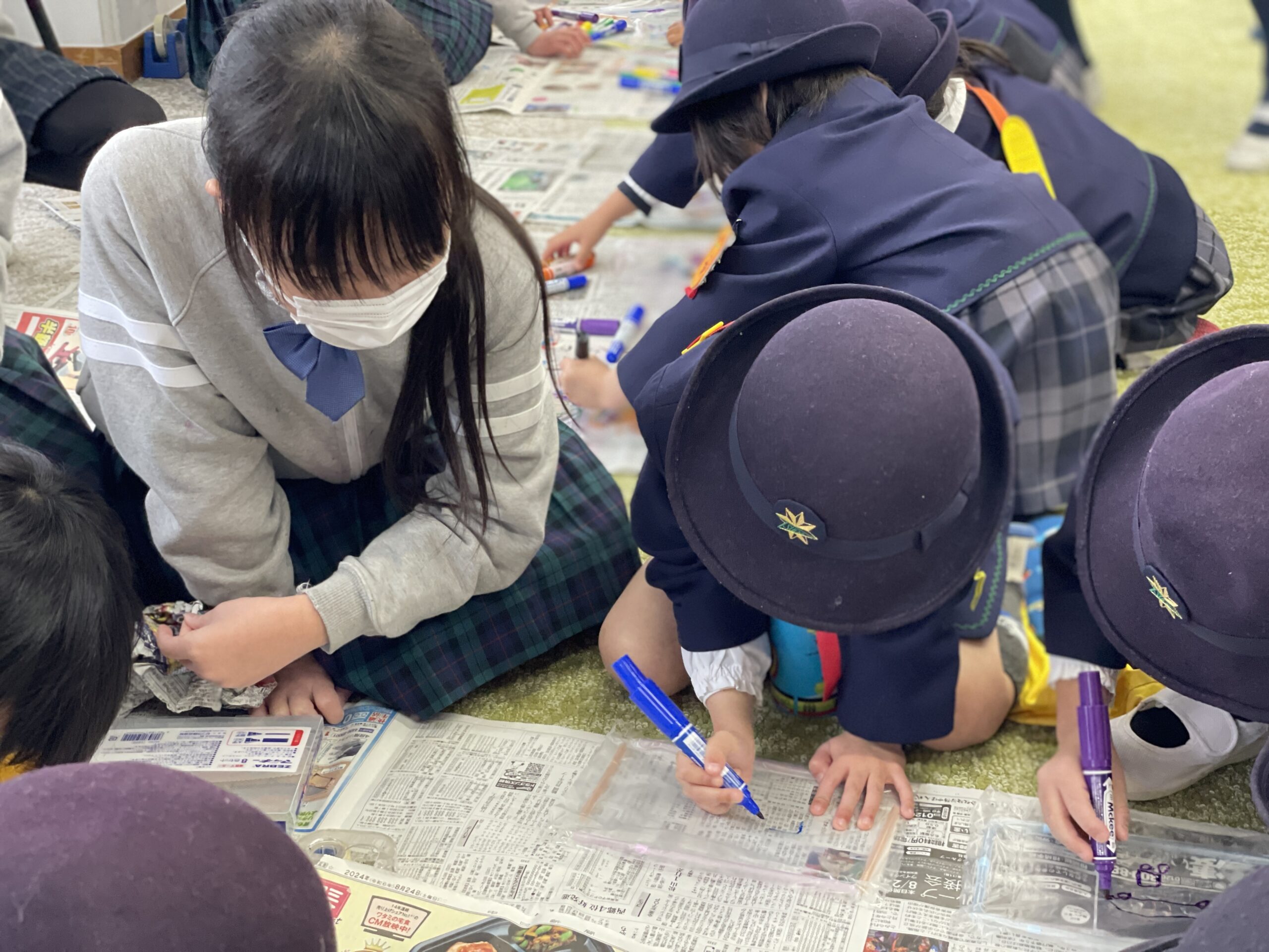 1月31日(金)、5年生が津田三滝幼稚園の年中児と交流会をしました。今回は、手作りの凧を一緒に作成しました。凧の絵を描くときやタコ糸を結ぶ際には5年生が優しくフォローしている姿には年上としての自覚と責任があり、またひとつ成長を感じることができました。実際に凧揚げをすることはできませんでしたが、年中児も楽しい時間を過ごせたと思います。また交流する機会があるといいですね。