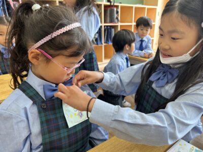 <span style=”font-weight: 400;”> 2年生が1年生にむけて学校の案内をしてくれました。2年生の子たちは、この日のために4階から1階まで津田学園小学校にはどんな教室があるのか、どんな時に使うのかを1年生に伝えるために原稿を作ったり、旗を作ったりして準備をしてきました。1年生の子たちからは、2年生のお兄さん、お姉さんとっても優しかったという声が聞こえてきました。