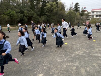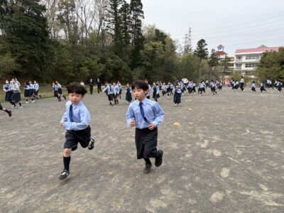 【運動の時間】朝の持久走が始まりました(1年生)