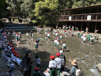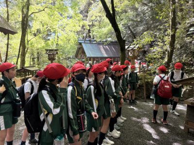 5,6年生の遠足は多度山登山です。スクールバスで多度大社手前まで向かい、そこから遠足のスタートです。登山の前に多度大社で全員の安全を祈願しました。参拝後、多度大社を後にして登山口へ歩み始めます。登山口からは標高403mの山頂に向けて本格的な山道のスタートです。子供たちはお互いに励まし合いながら懸命に登り、誰一人、リタイアすることなく全員揃って山頂まで辿り着きました!山頂の展望台で記念写真を撮影後、待ちに待ったお昼ご飯の時間です。お家の人に作ってもらったお弁当を広げながら友達との会話を楽しみました!保護者の皆様、子供たちのためにお弁当を作っていただきありがとうございます。下山後、多度峡の天然プールで水遊びをしてながら涼みました。児童のみなさん、最後までよく懸命に歩き切りました!