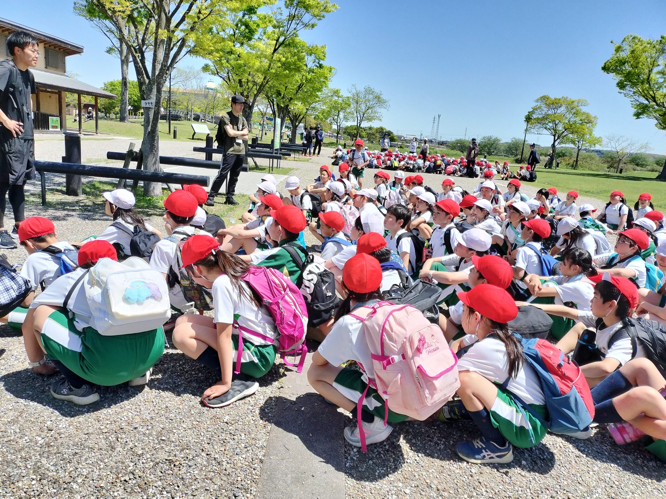 3年生と4年生は三岐鉄道を使って、東員町にある中部公園にいきました。電車内では、マナーを守って乗車することができ、中学年として頼もしかったです。中部公園に着いた後に、集合写真をとり、おいしいお弁当をみんなで食べました。食べ終わった後には、たくさんの遊具や広い芝生でたくさん遊び、元気に走り回る姿ととびきりの笑顔を見せてくれました。児童は長い道のりを最後まで諦めることなく、みんなで励まし合い歩き続け、無事学校に帰ってくることができました。