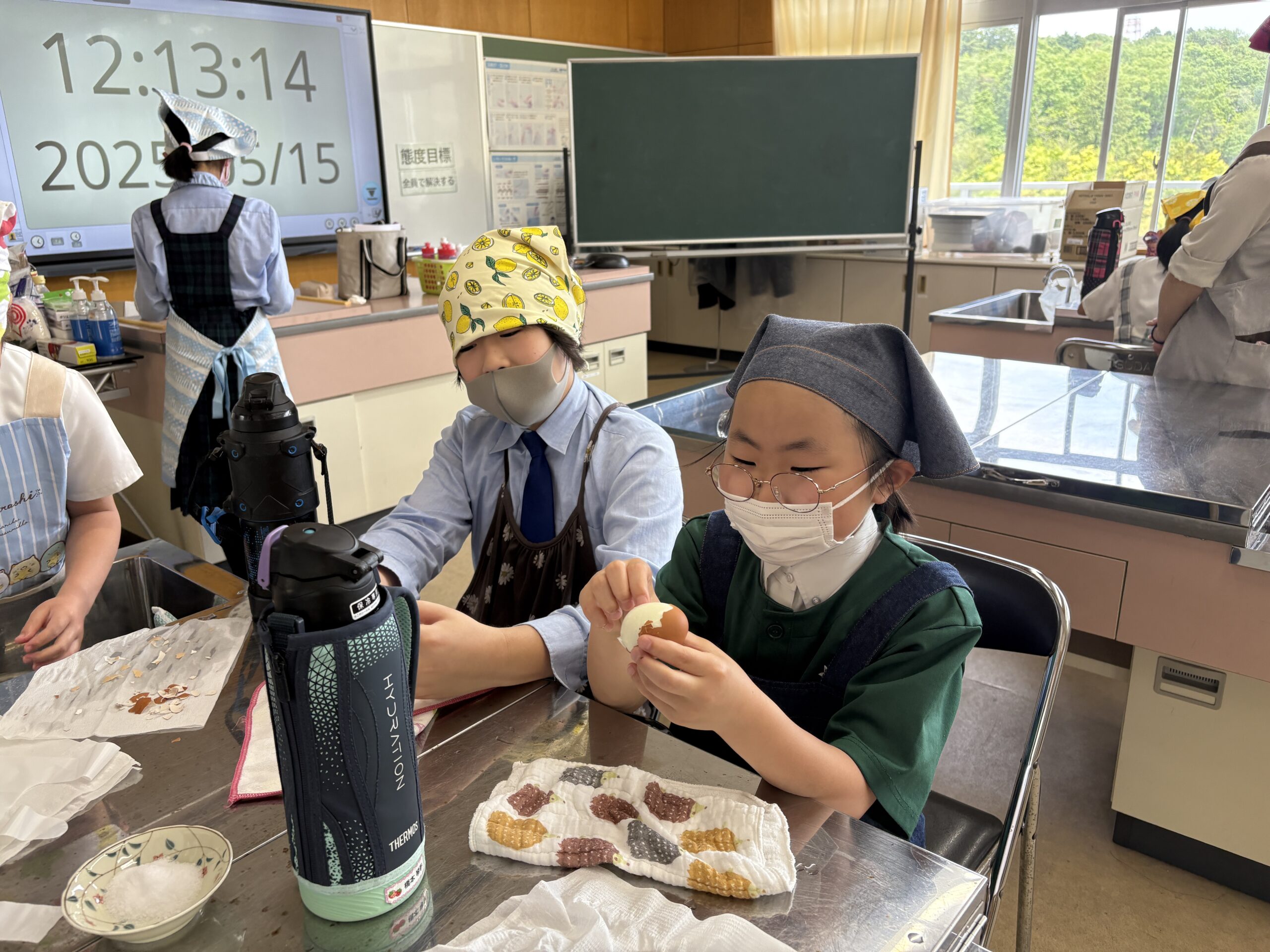 5年生が家庭科の授業で初めての調理実習を行いました。初めてということで調理方法も茹でるのみである、ゆで卵づくりに挑戦しました。茹で時間は各々が決めました。とろとろ半熟から中までしっかり火の通ったものまで様々なゆで卵が出来上がりました。調理したゆで卵は塩やマヨネーズをつけておいしくいただきました。