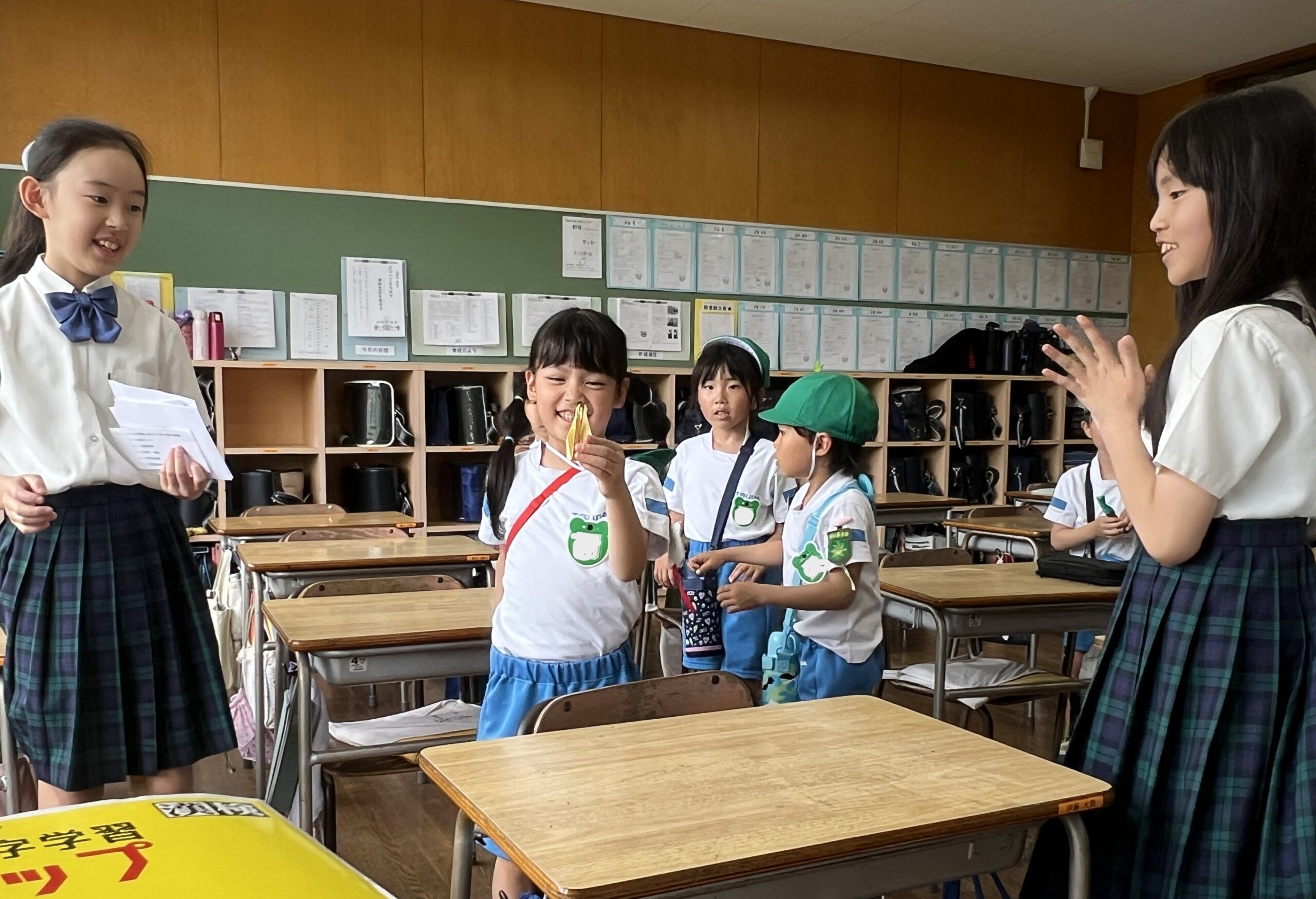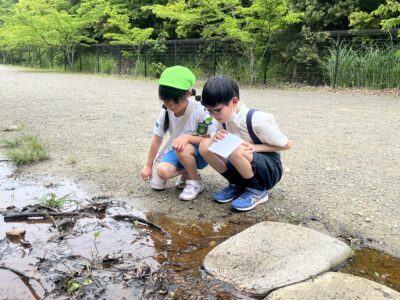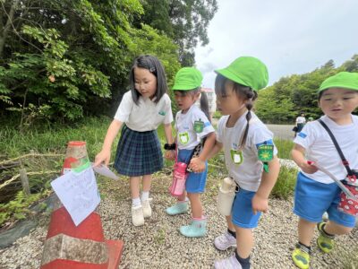 5月22日(木)に5年生が津田桑名幼稚園の園児と交流会を行いました。園児に楽しんでもらおうと、5年生は自分たちで交流会の内容を考えて準備をしました。交流会当日は津田学園小学校のクイズに答えてもらいながら、スタンプラリーを行いました。生き物を一緒に観察したり、宝探しをしながら交流を深めることができたと思います。一緒に楽しもうと優しく声かけを行う5年生の姿はとても頼もしかったです。今後もこうした機会を通して、より成長した姿を見せてほしいです。