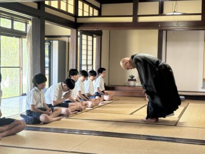 6年生が小学校生活最後の座禅指導を受けました。座禅のポイントは3つで姿勢、呼吸、心を「調える」ことです。姿勢はおへそに力を入れること、呼吸は吐いてから吸うことです。その2つを調えることで心も調ってきます。また、最後に「あきらめる」ことの大切さを教わりました。「あきらめる」という言葉はよくないイメージを持つことが多いですが、本来の意味は「明らかにして受け入れる」だそうです。そして、受け入れるだけではなく、「反省」することも大切ということでした。