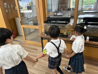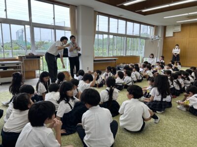 6月12日(水)2年生が津田第二幼稚園との交流会を行いました。幼稚園のお友だちは、小学校の音楽の授業を体験したり、2年生と一緒に学校の中を探検したりと、初めての小学校に興味津々で目を輝かせていました。2年生にとっても、幼稚園の子たちとの交流は初めての経験です。ちょっぴり緊張しながらも、かっこいいお兄さん、お姉さんとして優しく接したり、学校を案内したりと、頼もしい姿がたくさん見られました。今回の交流会を通して、2年生は思いやりの気持ちや、上級生としての自覚を育むことができたようです。幼稚園のお友だちにとっても、小学校がぐっと身近に感じられる、楽しい時間になったことと思います。