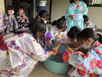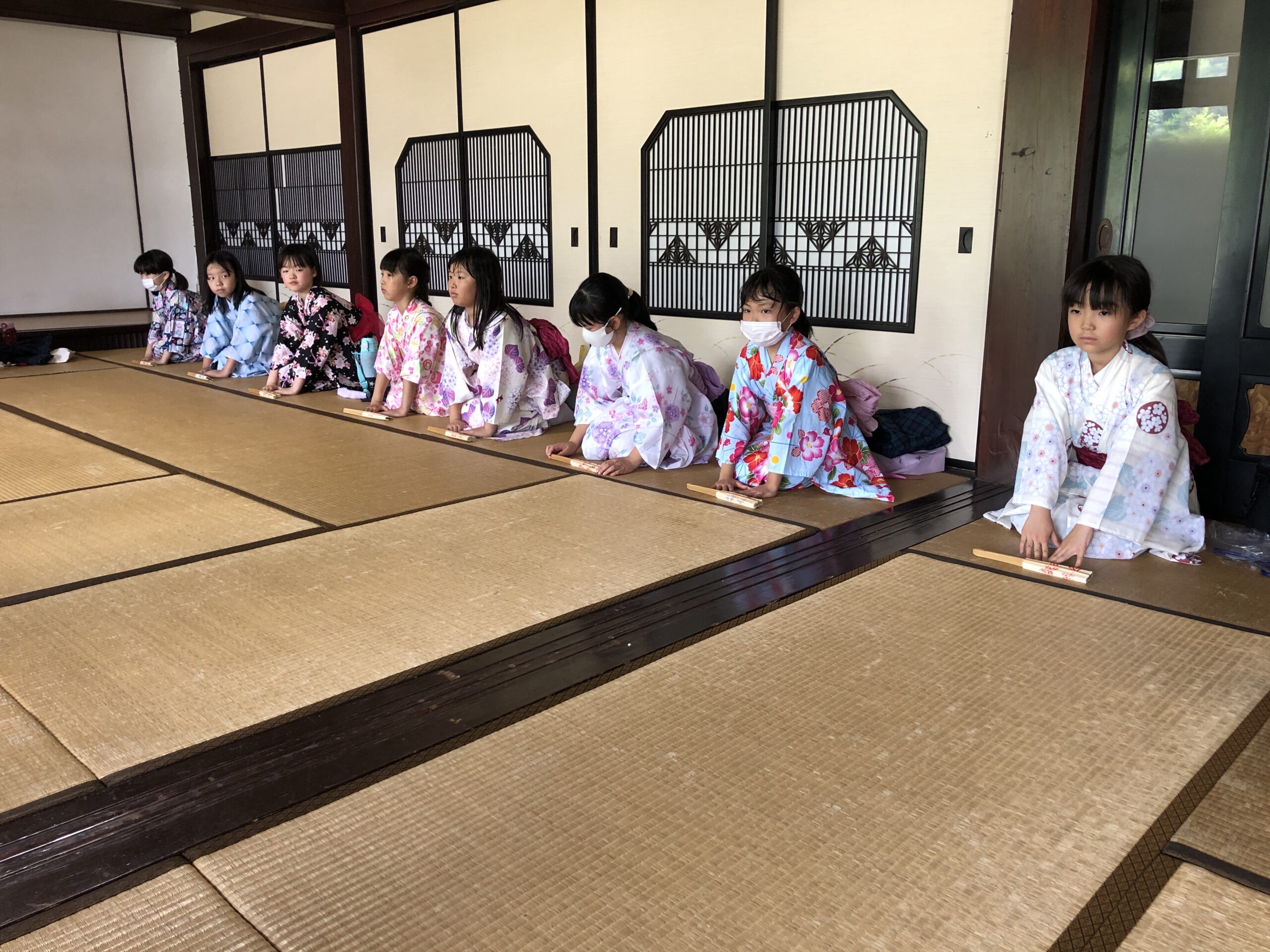 浴衣を着た後は、お辞儀の仕方や座り方など、日本の伝統的な作法も実践。普段とは違う姿勢で、日本の文化の奥深さを肌で感じることができたようです。このような体験を通して、子どもたちは日本の美しい文化に触れるだけでなく、物を大切にする心や、礼儀作法を学ぶことができました。
