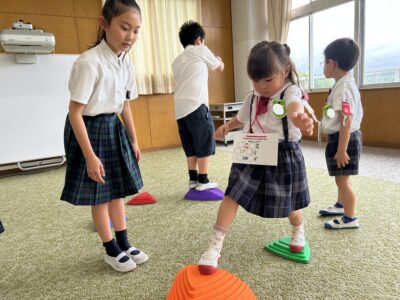7月16日(水)3年生が津田第一幼稚園のお友達を招いて、楽しい交流会を行いました!今回は、3年生が企画したスタンプラリー形式の交流会。各チェックポイントでは、3年生が準備した様々なレクリエーションが待っていました。幼稚園のお友達は、3年生のお兄さんお姉さんと一緒に、元気いっぱいに体を動かしたり、頭を使ったりして楽しんでいました。スタンプが一つずつ増えていくたびに、幼稚園のお友達の顔には達成感が。そして、優しくサポートする3年生の姿は、とても頼もしく見えました。お互いに声をかけ合い、笑顔が絶えない温かい時間となりました。