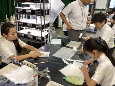 9月6日(土)の土曜講座は、津田学園中学校の先生による理科講座でした。今回は、紙と割りばしを使った飛行機づくりに挑戦しました。割りばしの前後に大きさの異なる紙の輪を取り付け、ジャイロ効果を利用して飛ばすこの飛行機。子供たちは、輪の大きさや取り付ける場所、重心の位置、輪の形など、様々な条件を変えながら試行錯誤を繰り返しました。「どうしたらもっと遠くまで飛ぶかな?」「バランスを取るにはどうしたらいいんだろう?」と、自分の考えを形にしていく姿は、まさに探究心にあふれていました。