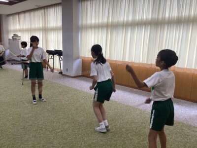 ダブルダッチ同好会:ダブルダッチ同好会では、2本の縄を使い、リズムに合わせて軽やかに跳びました。みんなで声を掛け合いながら、楽しそうに練習に取り組みました。