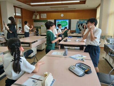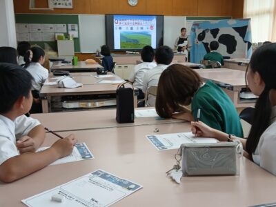 9月12日(金)、6年生の家庭科で株式会社明治の講師の先生をお招きし、「ヨーグルトのひみつ」について学ぶ出前授業が行われました。授業では、ヨーグルトが持つ発酵食品としての歴史や、私たちの体にとって良い影響を与えるその良さについて、クイズを交えながら楽しく学習しました。子どもたちは、身近な食品に隠された不思議な力に興味津々の様子でした。さらに、飲むヨーグルトを振って固める体験活動も行いました。みんなで一生懸命にシェイクし、だんだんと固まっていく様子に「おー!」と歓声が上がりました。最後は自分たちで作ったヨーグルトを美味しく試食し、笑顔があふれていました。