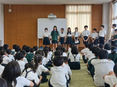 最後に、校長先生から約1ヶ月後に迫った運動会に向けてお話がありました。練習が本格化するこの時期、目標に向かって協力し合うことの大切さや、一人ひとりが全力を出し切ることの意義について、子供たちは真剣に耳を傾けていました。前期の活動を締めくくり、新たな目標である運動会へと気持ちを切り替える、節目の集会となりました。
