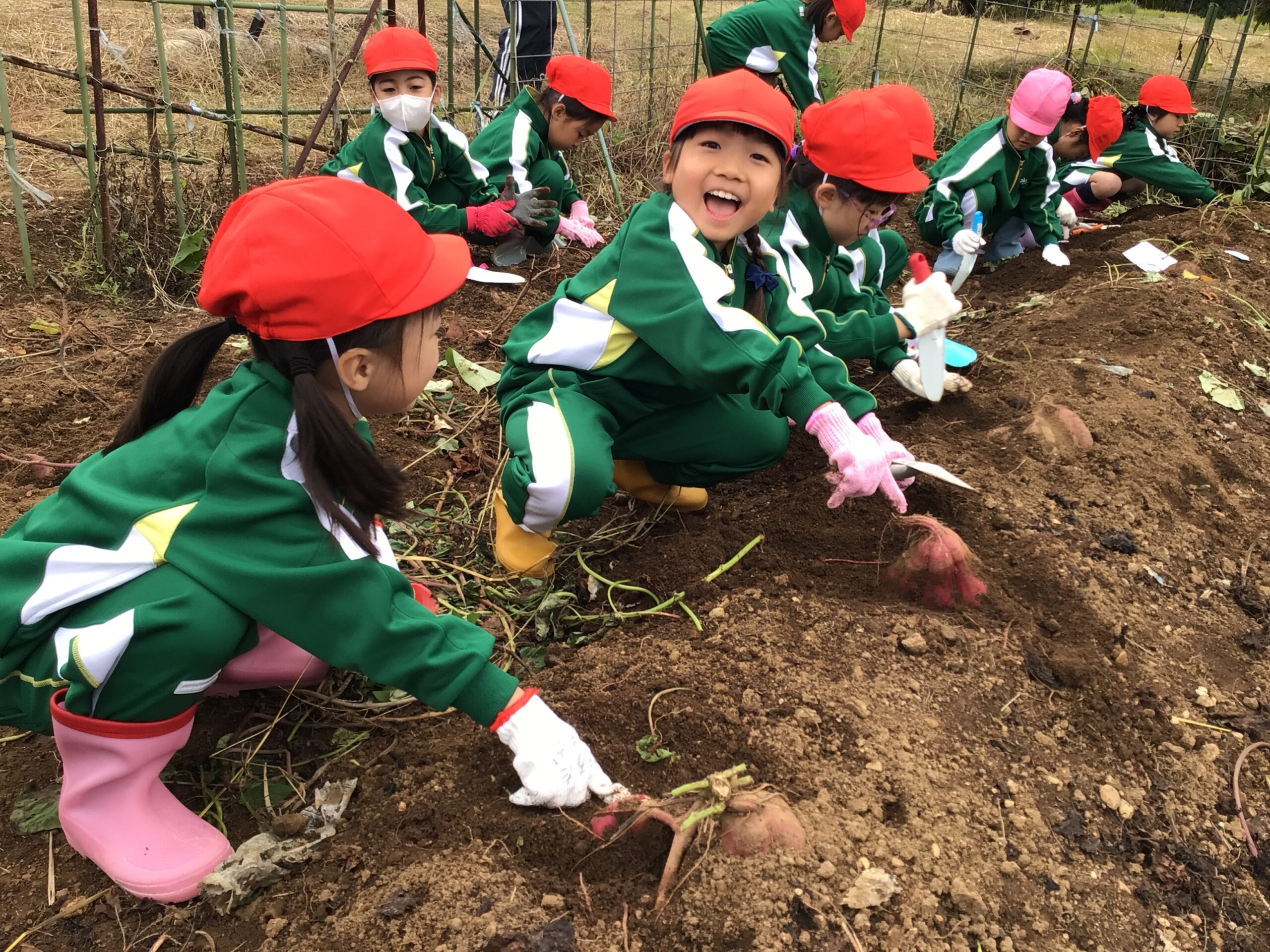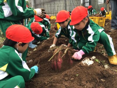 1年生が柳川農園で芋掘り!秋の収穫に大喜び